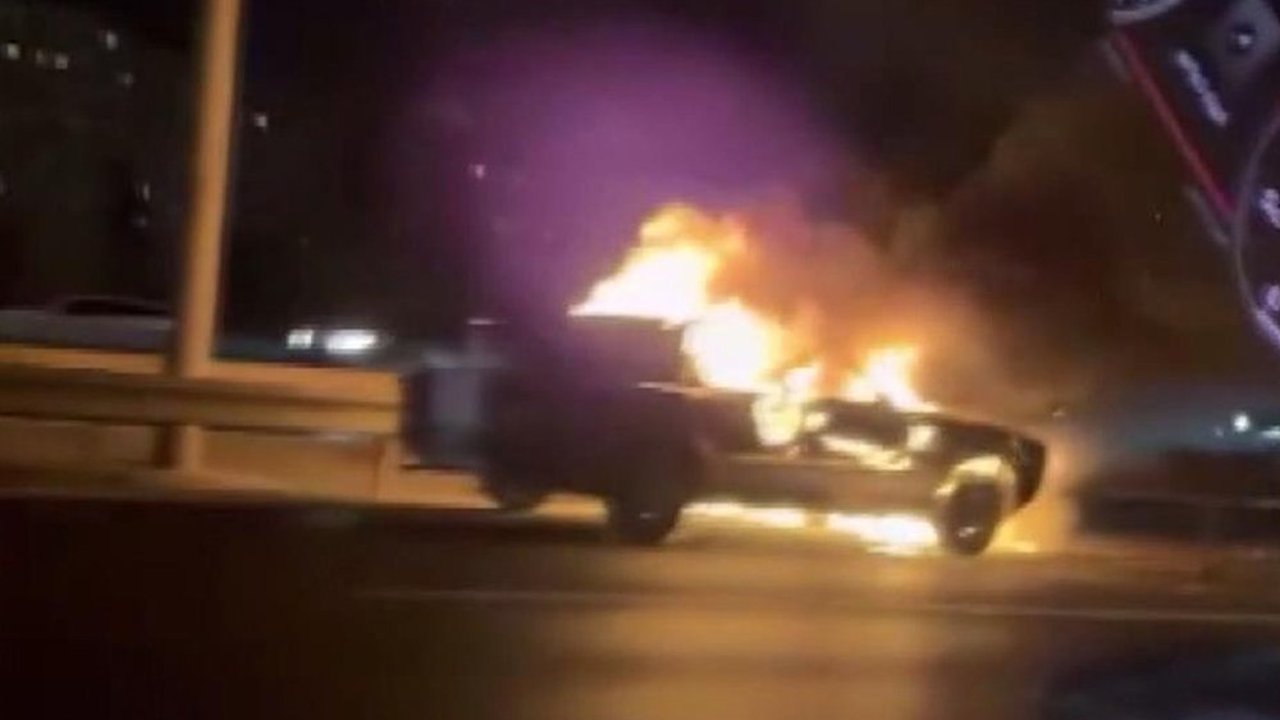 Ümraniye TEM Otoyolu’nda otomobil alev alev yandı